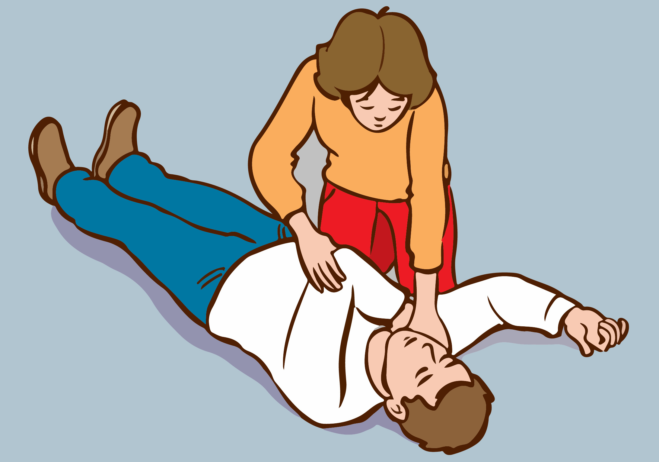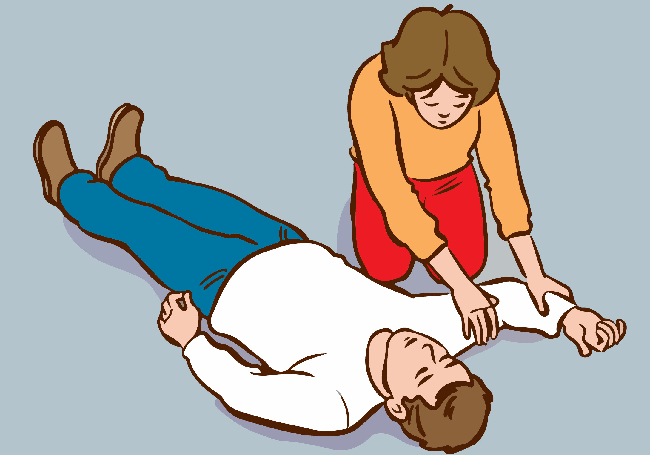 - Bleiben Sie bei der betroffenen Person und prüfen Sie wiederholt, ob die Person ansprechbar ist und normal atmet, bis die Rettungskräfte eintreffen.