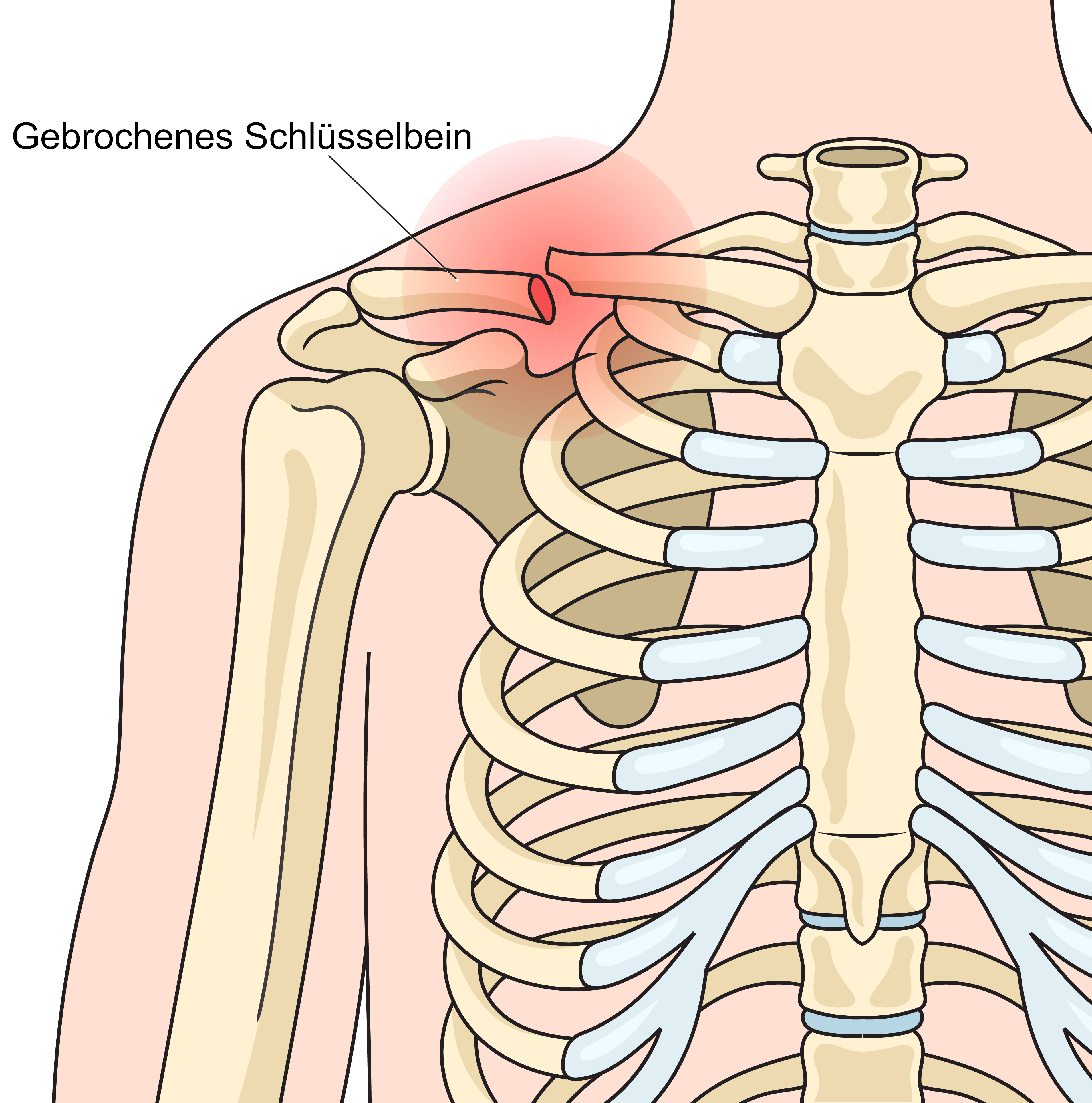 - Bruch des inneren Schlüsselbeins: Sehr selten sind Brüche des Schlüsselbeins in der Nähe des Brustbeins.